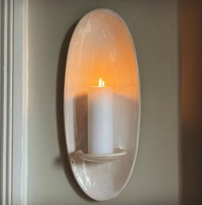 The Ovalo Candle Wall Sconce 45cm - 50cm length x 19cm wide. Handmade to order and can be customized. International shipping ability. Romantic, tranquil and charming.